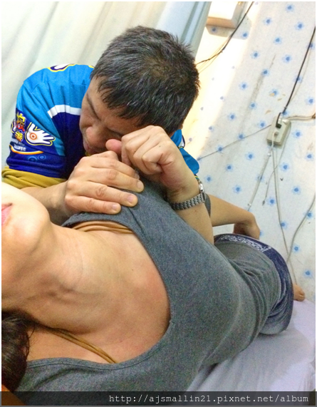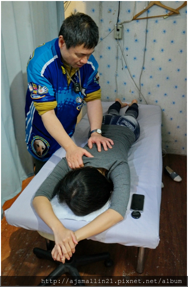 按完頸部、肩膀、背部、手、腿、腳、頭,師傅便開始協助做伸展,包括拉腿部的筋、扭轉上下身等,還好小in天生柔軟度不錯,伸展部分很easy,嘿嘿 ![]()