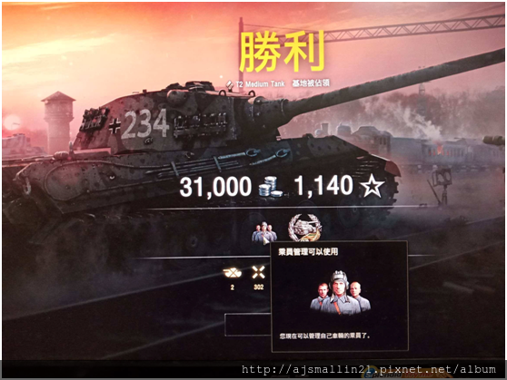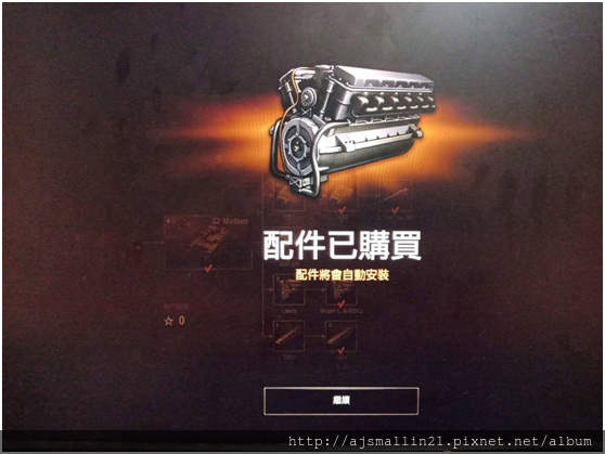打了幾場勝仗後,小in累積了戰鬥經驗(星星)和戰爭財(銀幣),研發了新的戰車配件並買了下來。